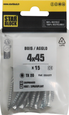 Starblock hout/spaanpl. schroef TX 4x45mm 15st zakje is available to buy in increments of 5