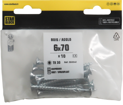 Starblock hout/spaanpl. schroef TX 6x70mm 10st zakje is available to buy in increments of 5