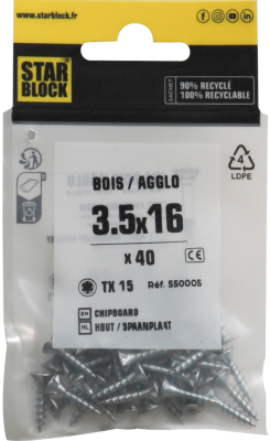 De Starblock® hout- en spaanplaat schroef is een verzinkte stalen schroef met verzonken kop en Torx®-kop. Deze schroef is ideaal voor het bevestigen en verbinden van hout, spaanplaat, multiplex of melamine onderdelen. Voor meubels, interieurprojecten of houtconstructies.
